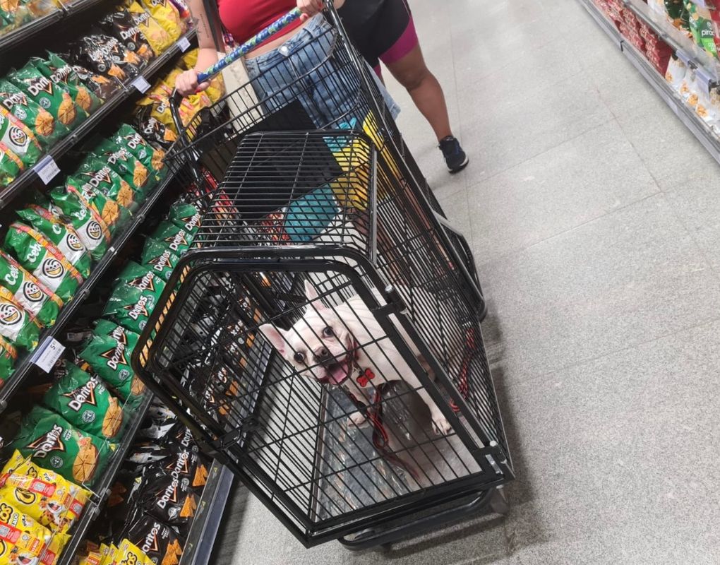 Nesse modelo de estabelecimento, os clientes contam com carrinhos de compras adaptados para receber seus bichinhos